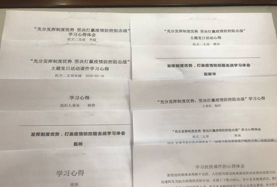 为深入贯彻中央和省市委、省教育厅关于疫情防控重要精神,认真落实学校关于疫情防控工作部署,充分发挥基层党组织战斗堡垒作用和党员先锋模范作用,机关二支部近日组织全体党员开展以“充分发挥制度优势 坚决打赢疫情防控阻击战”为主题的党日学习活动。