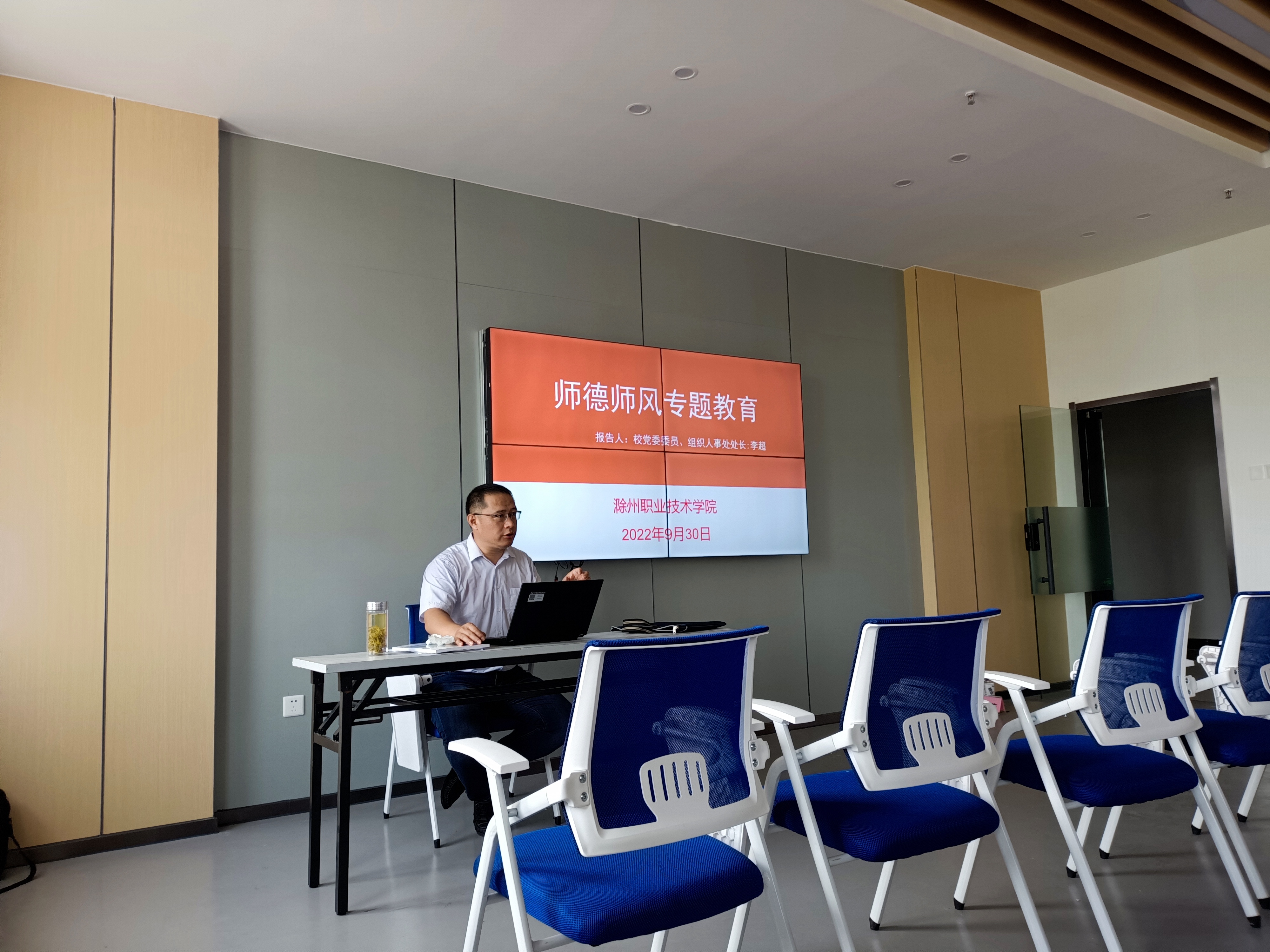 9月30日,Beat365在大学生活动中心309教室举办了师德师风教育专题讲座,校党委委员、组织人事处处长李超主讲。此次讲座是新进教师校本培训系列讲座之一,近两年新入职教师40人参加了培训。