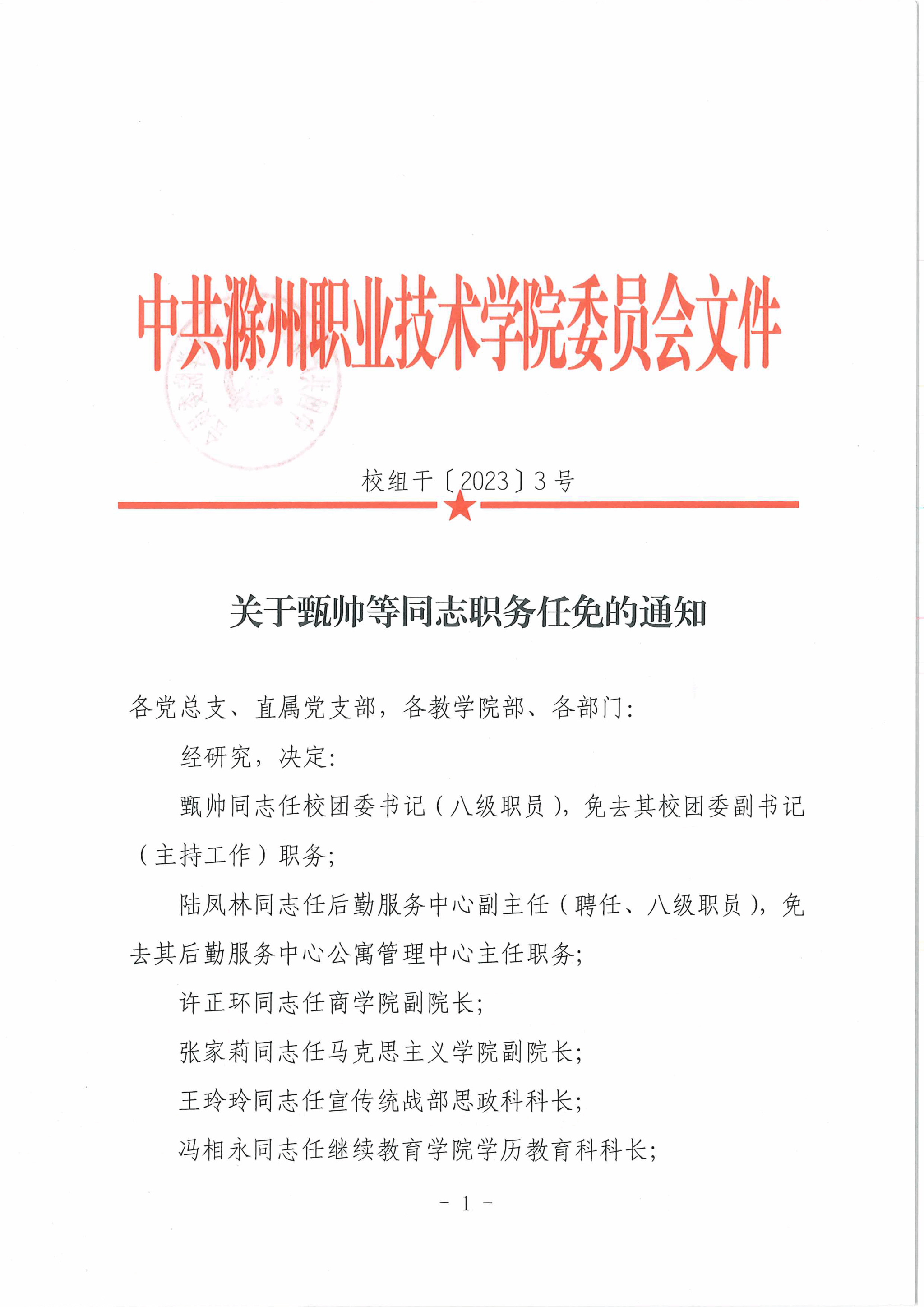 关于甄帅等同志职务任免的通知