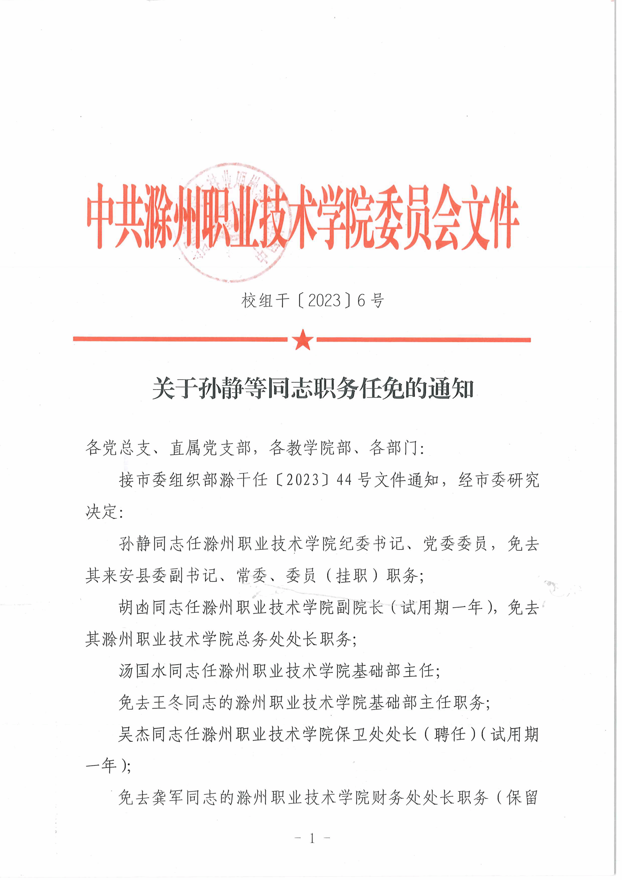 关于孙静等同志职务任免的通知