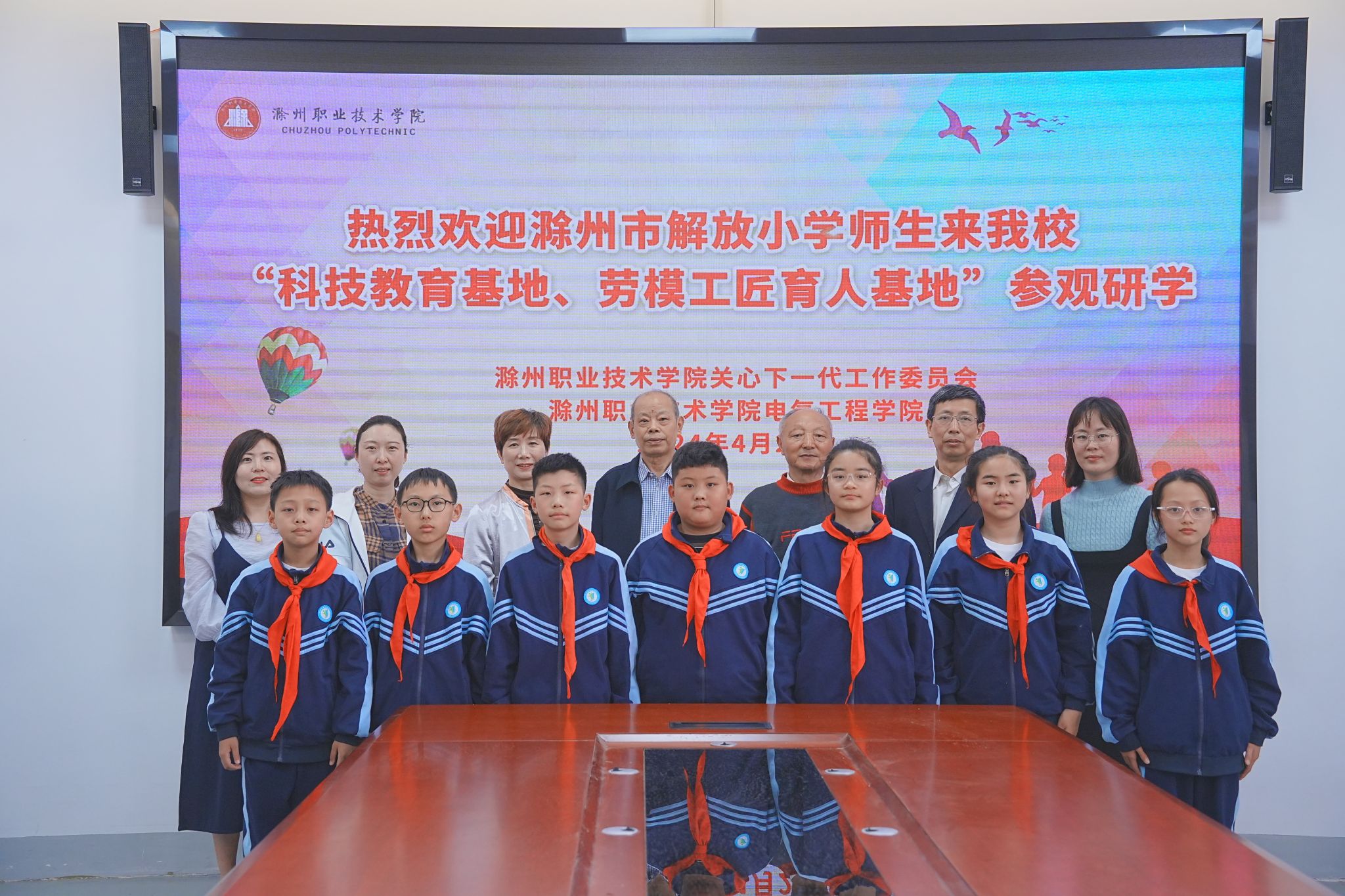 滁州市关工委聚焦科技教育,依托Beat365唯一官方网站智能制造中心建立“科技教育基地”和“劳模工匠育人基地”,旨在广大青少年中开展“崇尚科学、向科学家学习,科普教育、科技实践、筑梦科学家”的科技教育活动。学校关工委对标滁关工委〔2024〕9号文件精神,积极发挥“基地”育人作用,助力科学的种子萌芽。4月23日下午,滁州市解放小学部分学生在大队辅导员吴卉兰、班主任赵成圆的带领下到“科技教育基地、劳模工匠育人基地”参观、研学。
