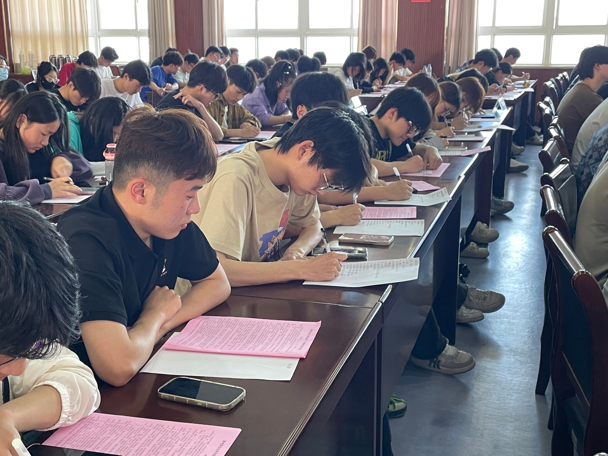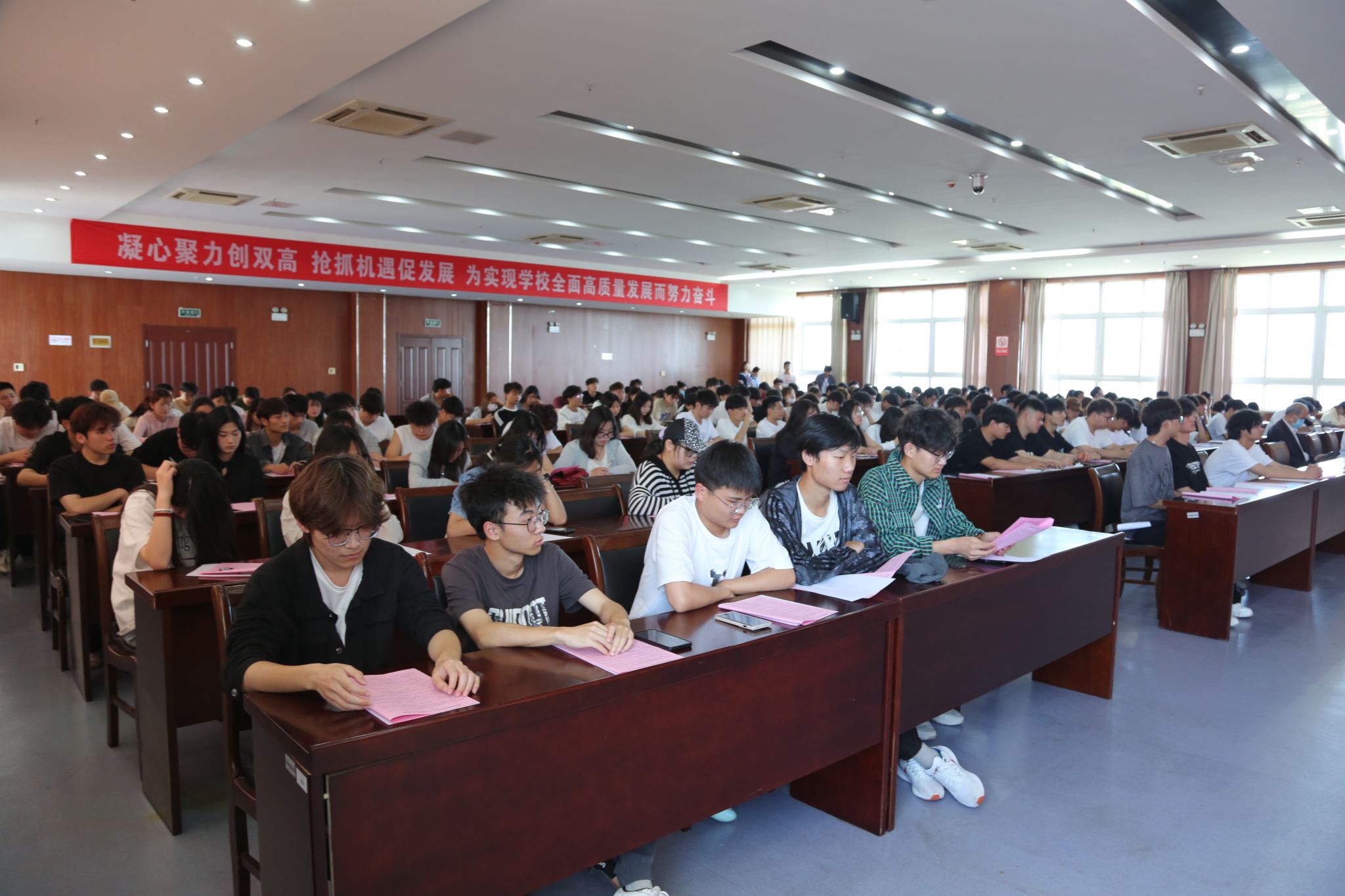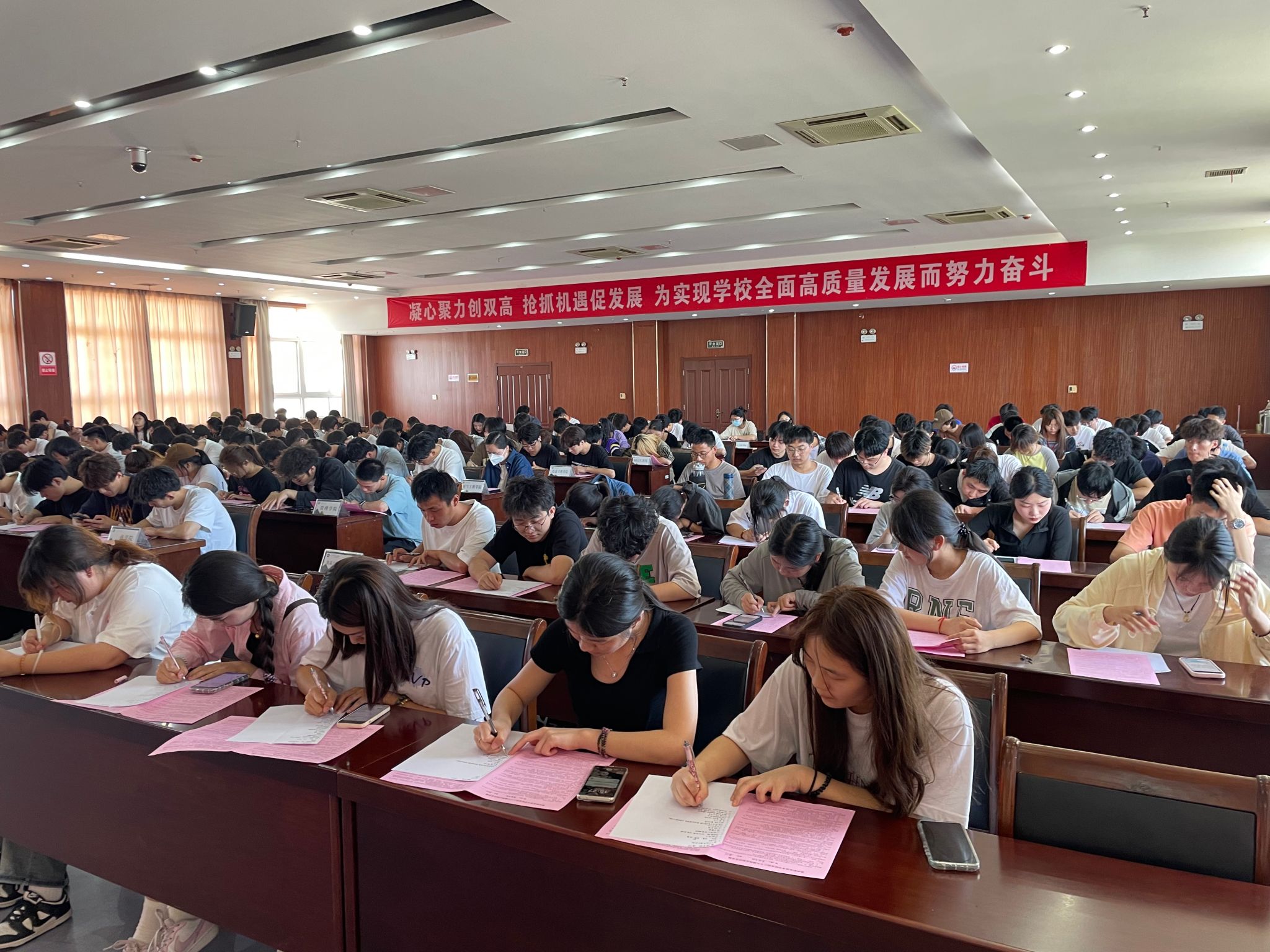 这次活动得到校办公室、各二级学院等部门大力配合支持,五楼报告厅座无虚席。同学们聚精会神,奋笔疾书,气氛高涨,取得了热烈辅导反响,达到了活动预期效果。